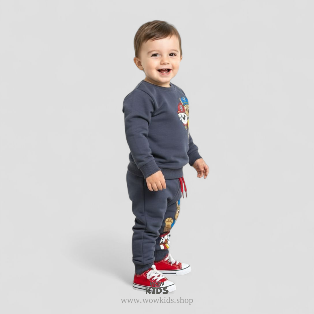 Ribbed cuffs on sleeves and pant ends for a snug, cozy look